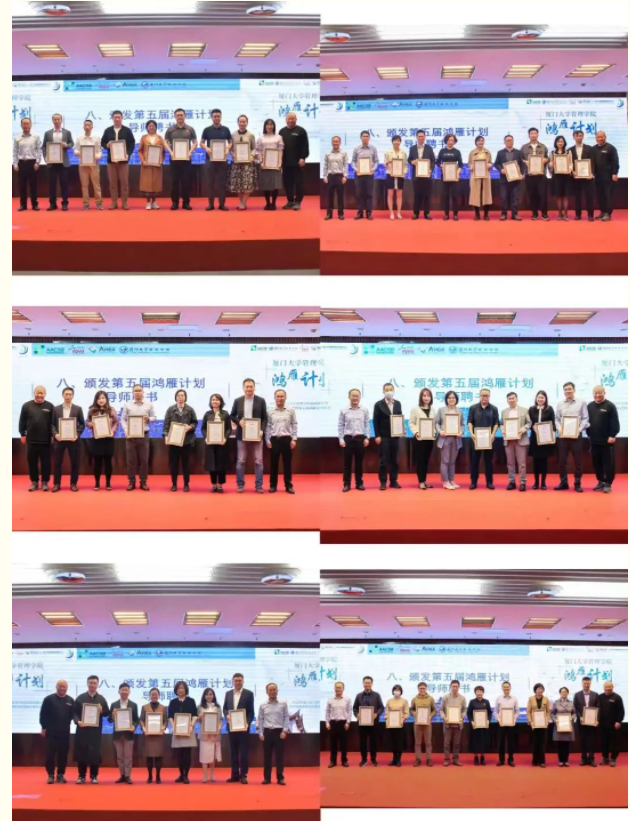 戴蓥和李绍玉共同为到场的第五届鸿雁计划导师代表颁发聘书。