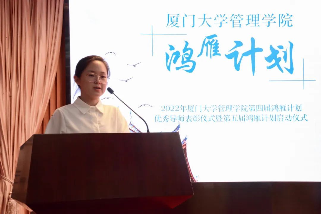 长风万里送秋雁,对此可以酣高楼。作为第四届鸿雁计划学员代表,姜慧男讲述了自己过去的两年,在鸿雁导师的引领下,如何一路成长,一路收获。她鼓励新加入的小雁们要积极配合导师,主动联络导师,虚心求教,从而更快地成长。